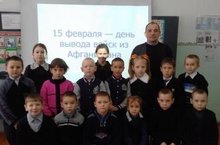 В рамках проведения месячника гражданско-патриотического воспитания, 15 февраля с учащимися начальных классов провели классный час, посвященный 29 – ой годовщине вывода советских войск из Афганистана «День памяти воинов Афганской войны», с приглашением воина – афганца Абросимова Владимира Николаевича. Владимир Николаевич рассказал учащимся, как они 18-летние ребята переносили все трудности стойко, мужественно и героически. Солдаты выполняли воинский долг перед Родиной. Учащиеся в ответном слове читали стихи, посвященные воинам – афганцам, вернувшимся и не вернувшимся из этой войны. Почтили память всех воинов интернационалистов минутой молчания.