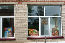 Учащиеся оформляли окна домов с помощью рисунков, картинок, фотографий и надписей, посвященных Победе советского народа над фашизмом в Великой Отечественной войне.