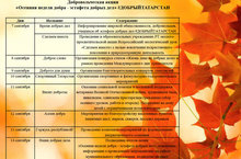 По инициативе Республиканского общественного движения «Вместе с Президентом!» при поддержке Республиканского совета по вопросам благотворительной деятельности в период с 7 по 14 сентября 2015 года в Республике Татарстан объявляется добровольческая акция «Осенняя неделя добра - эстафета добрых дел» #ДОБРЫЙТАТАРСТАН.