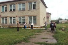 Учащиеся школы на экологическом субботнике "Зеленая Россия" навели порядок на территории школы.