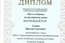 Уланов Ярослав, впервые представил наш район на республиканской олимпиаде школьников по английскому языку.