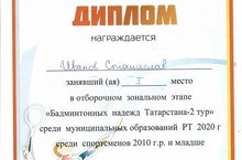 В честь празднования Дня Конституции РФ прошли соревнования по бадминтону. В Базарные Матаки поехали четыре любителя данного вида спорта - воспитанники преподавателя физической культуры Мулеева В.М. Здесь состоялся второй тур игры по бадминтону. Игра между участниками была завораживающей и интересной. Несмотря на присутствие и прекрасную игру соперников, наши обучащиеся возвратились домой с наградами: Пименов Руслан, ученик 4 класса, занял почётное третье место. Иванов Станислав,ученик 4 класса, занял 1 место. Мулеев Вадим, ученик 6 класса, занял 1 место. Достоин прекрасных слов ученик 4 класса Ястребов Владимир. Этот будущий спортсмен немного не набрал очков для призового места. Однако мы верим в него, верим, что всё у него получится!!!