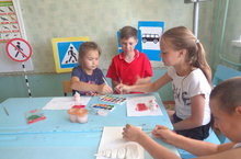В нашем летнем оздоровительном лагере сегодня прошли ряд мероприятия по профилактике безопасности на дорогах. С ребятами проведены игра «Светофор», мастер-класс «Умей переходить дорогу!» с целью выяснения имеющихся знаний у ребят по ПДД. Дети уяснили отличия мостовой от тротуара, выяснили, где можно играть, ходить, ездить на велосипеде, запомнили главные отличительные особенности указательных, предупреждающих и запрещающих дорожных знаков.