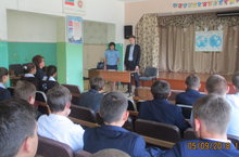 В рамках декады по профилактике экстремизма и терроризма в школе состоялась встреча с заместителем прокурора АМР Горожанкиной Л.Г. В аковом зале собрались старшеклассники и преподаватели. Лариса Георгиевна напомнила о страшных событиях в Беслане, рассказала о попытках террористических актов в нашей республике. Предупредила обучающихся о возможных угрозах, о соблюдении мер безопасности.