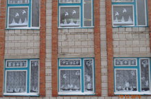 В школе проводился конкурс "Узоры на окнах", в рамках подготовки к новогодним мероприятиям. Все классы с интересом и энтузиазмом включились в этот конкурс.
