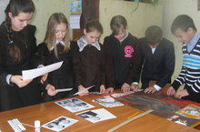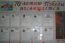 Стенд , посвящённый 70 – летию Победы оформляют члены краеведческого кружка. Каждому есть работа.