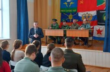 На встречу со старшеклассниками пришли ветераны погранвойск Владимир Семенов, Юрий Степанов и участник боевых действий в горячих точках Сергей Леонтьев.