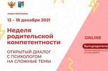 С 13 по 18 декабря 20212 года пройдет Неделя родительской компетентности – открытый диалог с психологом на сложные темы. Мероприятие будет проходит в онлайн-формате.