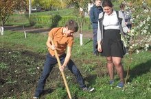В школе прошла акция "Посади дерево". Учащиеся школы посадили кустарники и плодоносящие деревья на пришкольном участке.