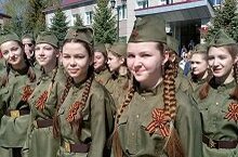 Югары сыйныф укучылары Аксубай бистәсенең үзәк мәйданында Җиңү парадында катнаштылар