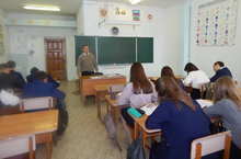 В рамках месячника ГО учитель ОБЖ Макаров Ю.Н. провел открытый урок в 8 классе на тему " ЧС природного и техногенного характера» (пожар)"