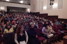 Первое общешкольное родительское собрание прошло в районном доме культуры. Обсуждались вопросы безопасности детей, вакцинации, питания.