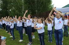Получив заряд бодрости от утренней зарядки и позавтракав, мальчики отправились на уборку спортивной площадки, девочки помогали с реставрацией книг в школьной библиотеке. После обеда активисты Россиийского движения школьников провели с ребятами КВИЗ, посвященный Дню России.