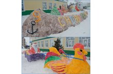 В преддверии Нового года хорошее настроение дарят снежные фигуры у крыльца нашей школы.