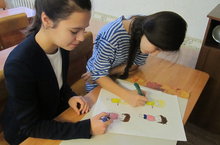 Девочки готовятся к флеш-мобу, посвященному Дню народного единства.
