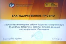 Благодарственным письмом награжден Совет старшеклассников нашей школы за участие в мониторинге детских общественных организаций Республики Татарстан и развитие детского движения в муниципальном образовании.
