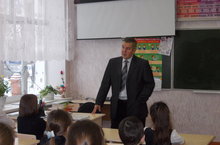 В 4"Б" класс на мероприятие был приглашен бывший учитель истории Терентьев М.А. Мероприятие посвящалось Дню героев Отечества. Тема патриотизма заинтересовала ребят. Дети были активны, задавали вопросы, на которые получали очень интересные ответы. В конце мероприятия дети поблагодарили выступающего и вручили небольшой подарок.