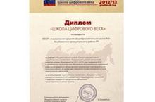 Школа награждена дипломом за активное участие в Общероссийском проекте "Школа цифрового века", разработанном в соответствии с Федеральной целевой программой развития системы образования на 2011-2015 годы и направленном на комплексное обеспечение образовательных учреждений цифровыми предметно-методическими материалами и дистанционными образовательными ресурсами для повышения профессионального уровня педагогических работников, за использование педагогическим коллективом образовательного учреждения возможностей современных информационных технологий и цифровых предметно-методических материалов, предоставленных в рамках проекта.