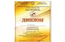 Климова Елена, ученица 11 класса, приехала с Дипломом II степени с регионального этапа XIII Всероссийского фестиваля патриотической песни "Я люблю тебя, Россия!". Достойная награда!