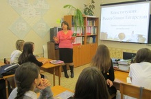 Учитель истории и обществознания Маклакова Е.В. провела в 9 "А" классе парламентский урок на тему "Конституция Республики Татарстан"