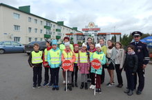 Члены отряда ЮИД, волонтеры совместно с сотрудником ДПС приняли участие в социальной акции "Пешеходный переход"