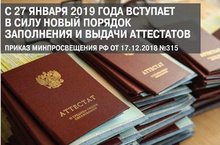 В связи с вступлением в силу приказа Минпросвещения России от 17 декабря 2018 г. № 315 "О внесении изменений в Порядок заполнения, учета и выдачи аттестатов об основном общем и среднем общем образовании и их дубликатов, утвержденный приказом Министерства образования и науки РФ от 14 февраля 2014 г. № 115" Департамент государственной политики в сфере оценки качества общего образования Минпросвещения России (далее - Департамент) направляет разъяснения по вопросу применения изменений, внесенных Приказом.