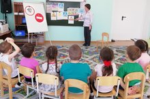 Сегодня с старшими воспитанниками провели тематическую беседу на тему"Дорожные знаки".Дети рассматривали иллюстрации,плакаты,собирали пазлы о дорожных знаках.