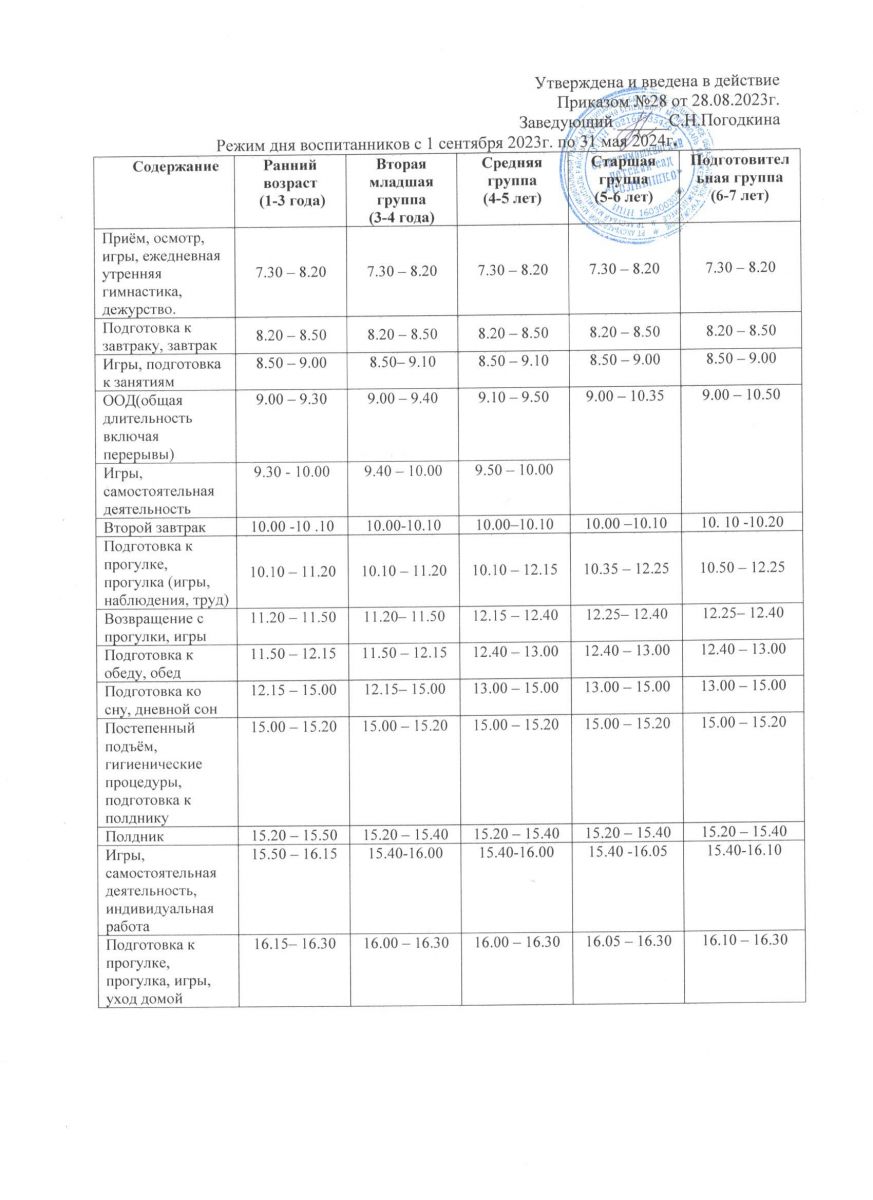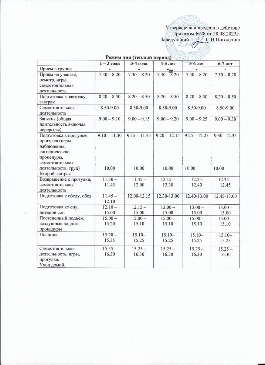 Режим дня (тёплый период) на 2023-2024 уч.год
