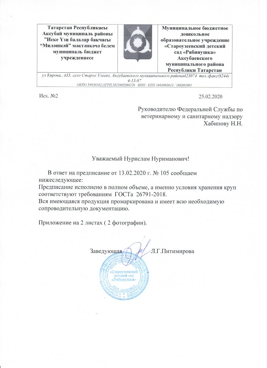 Предписание ФС по ветеринарному и фитосанитарному надзору от 13 02.2020г