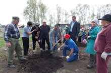 В ходе акции около обелиска, павшим и вернувшимся с Великой Отечественной войны, учащиеся школы, учителя, участники ВОВ, ветераны труда посадили яблоневый сад, аллею из рябины и ели, декоративные кустарники.
