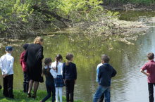 С целью развития наблюдательности, умения целенаправленно использовать содержательный план наблюдений о признаках весны с учетом местного природного окружения с учащимися начальных классов проведен урок-экскурсия. Учащиеся с учителями работали над исследованием экологии края. В ходе экскурсии изучили жизнь водоема ( на примере пруда за школой).