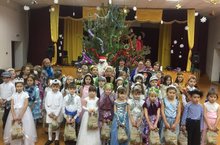 В нашей школе увлекательное новогоднее мероприятие проходило 25 декабря. Для учеников начальной школы прошло новогоднее представление со сказочными героями. Все ребята пришли в новогодних костюмах.