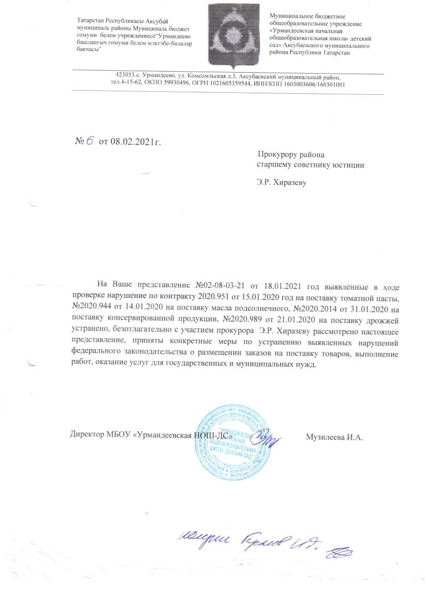 Представление об устранении нарушений законв в сфере закупок товаров, работ, услуг для обеспечения государственных и муниципальных нужд