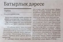 16 февраля 2024 года в № 6 районной газеты «Актаныш таннары» была напечатана статья «Батырлык дәресе» заместителя директора по ВР Зямиловой Р.Г.//
