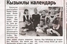 В номере № 48 Республиканской детско-юношеской газеты «Көмеш кыңгырау» от 09 декабря 2023 года был опубликован рассказ ученицы 9 класса нашей школы Шайдуллиной Ильвины «Кызыклы календарь». Руководитель Ахметова Ч.И.//