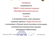 18 мая 2023 года проводился муниципальный этап республиканского конкурса в рамках проекта «Герои Отечества» в номинации «Лучший музей (музейная экспозиция), посвященный увековечению памяти защитников Отечества» в 2023 году среди общеобразовательных организаций. По итогам конкурса музей МБОУ «Аккузовская ООШ» Актанышского муниципального района РТ занял 1 место. Руководитель: Зямилова Р.Г.