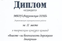 На районном этапе республиканского конкурса ЮИД «Безопасное колесо-2023» команда МБОУ «Аккузовская ООШ» заняла 2 место в творческом конкурсе команд «Вместе- за безопасность дорожного движения». Руководители Зямилов Р.Ф. и Зямилова Р.Г. Поздравляем!!!///