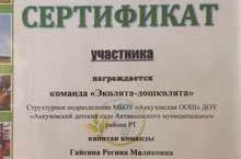 14 декабря 2022 года подвели итоги Республиканского экологического онлайн-конкурса "Эко дети-2022". На протяжении пяти недель соревновались команды с разных городов и районов. Конкурс состоял из пяти заданий: "Давайте познакомимся", "Мы за раздельный сбор мусора", Экомода будь в тренде", "Наши любимые питомцы","Экоритмы". По итогам конкурса команда МДОУ "Аккузовский детский сад" "Эколята-дошколята" вручили сертификат.///