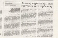 23 декабря 2022 года в № 50 районной газеты «Актаныш таннары» была напечатана статья «Балалар журналлары аша горурлык хисе тәрбияләү» заместителя директора по ВР Зямиловой Р.Г.//