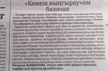 2 апреля 2022 года в №12 газеты «Комеш кынгырау» был напечатан рассказ «Күктәге аю» ученицы 2 класса Исламовой М.//
