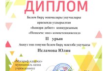 2022 елның 1-3 мартында “Актаныш технология техникумы» да гомуми белем бирү учреждениеләре укучылары арасында «Профдедют» һөнәри конкурсы үткәрелде. Конкурста 25 гомуми белем бирү учреждениесеннән 126 укучы катнашты. Жюри беркетмәләре нигезендә, безнең мәктәптән 7 сыйныф укучысы Исламова Юлия «Пешекче эше» компетенциясе буенча II урынны яулады. Җитәкчесе Җәмилова Р. Г. Котлыйбыз!