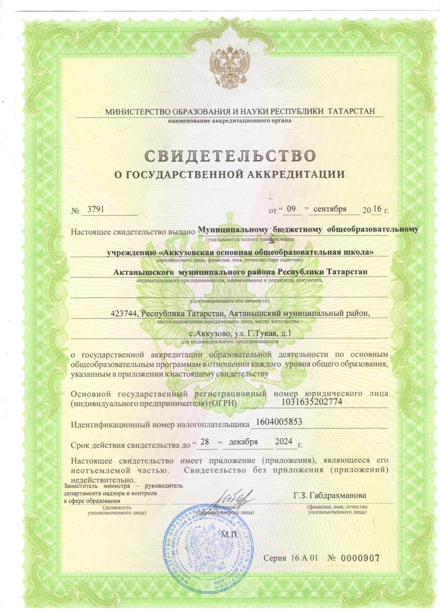 Муниципальное бюджетное общеобразовательное учреждение «Аккузовская основная общеобразовательная школа» Актанышского муниципального района Республики Татарстан / Татарстан Республикасы Актаныш муниципаль районы «Аккүз төп гомуми белем бирү мәктәбе» муниципаль бюджет гомуми белем бирү учреждениесе»