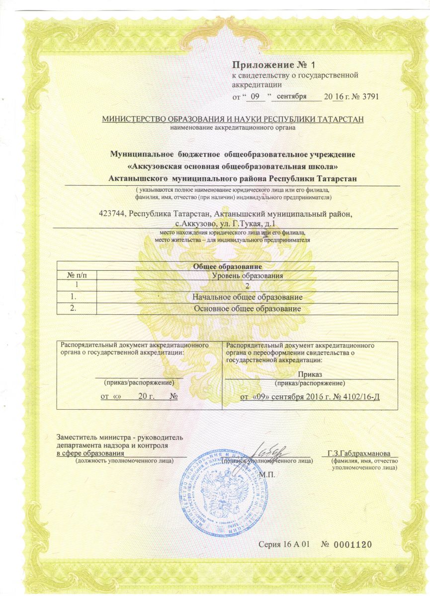 Приложение к свидетельству о государственной аккредитации / Дәүләт акктредитациясе турында таныклык кушымчасы (09.09.2016)