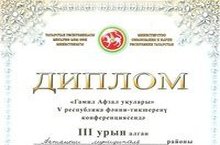 13 май көнне Сәләтле балалар өчен гуманитар гимназия-интернатында гомуми урта белем бирү йортлары укытучыларының V Республикакүләм Гамил Афзал укулары оештырылды. Безнең мәктәптән тарих һәм җәмгыять белеме укытучысы Хабибуллина С.Г. катнашты. Ул "Г.Афзал иҗаты һәм бүгенге әдәбият" секциясендә чыгыш ясап, 3 урынны яулады һәм ТР Мәгариф һәм фән министрлыгы дипломы белән бүләкләнде.