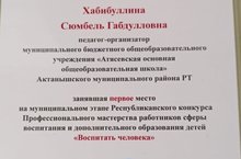 В честь Дня учителя сегодня в Доме культуры Актанышского района прошло мероприятие , которое собрало самых -самых лучших учителей и воспитателей, ветеранов , кто посвятил свою жизнь в преподавательскую деятельность. Учителя из нашей школы так же были награждены высшими наградами. Это Хабибуллина Сюмбель - педагог -организатор школы, учитель истории и обществознания , ее награда - "1 место на муниципальном этапе РЕспубликанского конкурса "Воспитать человека " . Второй номинант -это Гатина Резеда - учитель информатики и математики, она заняла 3 место в номинации