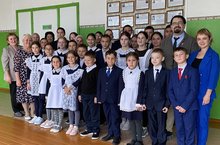 Мәктәп директоры Илзидә Сәгыйдулла кызы һәм кунаклар мәктәп укучыларын яңа уку елы белән котладылар.