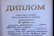"Гамил Афзал укулары" 3 республика фәнни-тикшерү конференцисендә Хабибуллина С. 2 нче дәрәҗәдәге диплом, Галиева Л. шаһәдәтнамә белән бүләкләнделәр.Котлыйбыз!
