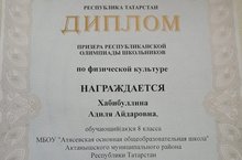 Физкультурадан республикакүләм олимпиадада 8 класс укучысы Хабибуллина Адилә призер булды. Котлыйбыз!