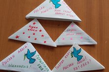 Бүген укучылар солдатка хат яздылар./Сегодня учащиеся написали письмо солдату.