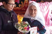 7 нче класс укучысы – Әхмәтхуҗин Н.И. Гәрәева Рәйсә апаны “Өлкәннәр көне” белән котлады./ Ученик 7 класса Ахматхузин Н.И. поздравил Гараеву Раису с днём пожилых людей.